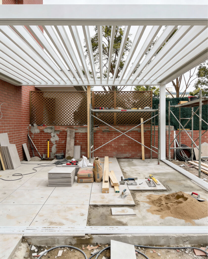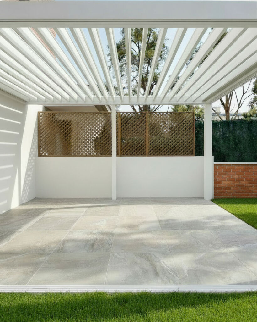 Se mejoró la pavimentación y la estructura, creando un espacio más ordenado, funcional y coherente con el nuevo lenguaje estético del interior, pensado para disfrutar del exterior durante todo el año.